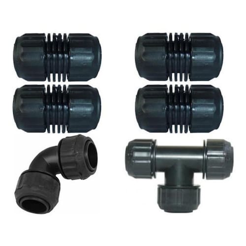 4 Uniões 1 Joelho 1 Tê Para Mangueiras Santeno Cor: Preto São conexões duráveis que foram fabricadas especialmente para serem utilizadas com as mangueiras Santeno, o que garante a eficiência e versatilidade do sistema de irrigação.