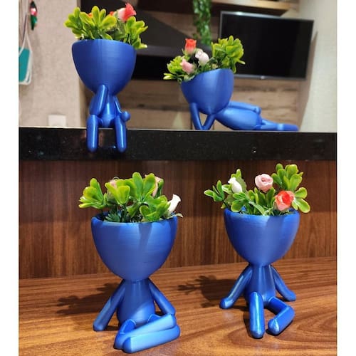 Com design divertido e acabamento em azul metálico, esses vasos são ideais para quem busca uma decoração descontraída e estilosa.