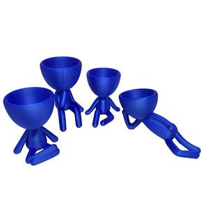 Kit 4 Vasos Suculentas Decoração Robert Plant Vaso 3D Decorativo Azul Metálico