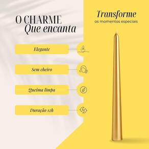 Vela Decorativa Lisa 24,5cm Cor: Dourado Transforme a atmosfera do seu ambiente com nossa vela decorativa lisa, ideal para quem valoriza estilo e sofisticação nos detalhes. Com 24,5 cm de altura e acabamento cintilante na cor dourada, essa peça é perfeita para composições modernas, elegantes e com estética aesthetic.