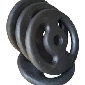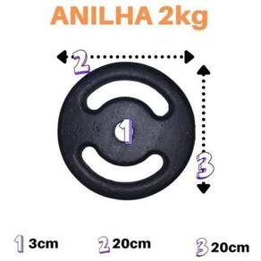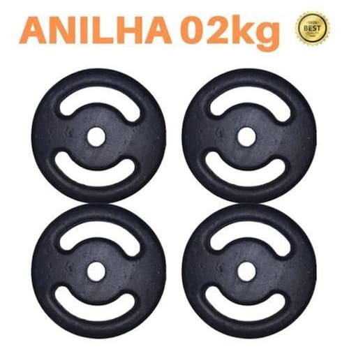 Características Peso unitário - 02kg Peso total - 8kg Quantidade - 4 unidades Diâmetro do furo central - 3cm Material - Ferro Fundido Cor - Preto Marca - Anilhas&Cia