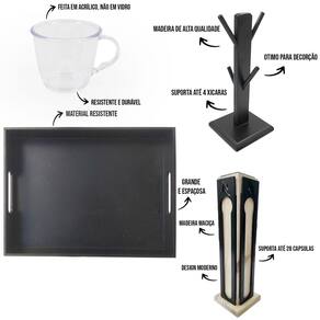 Esse é o produto ideal para decorar o seu tão especial cantinho do café ou até mesmo presentear uma pessoa querida, além da beleza o porta xicaras é feito em mdf que é muito resistente, ideal para xicaras/canecas de até 240ml. Com esse porta xicaras você vai conseguir deixar seus armários muito mais organizados.
