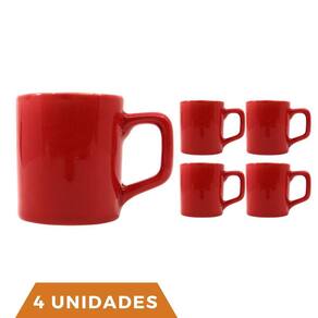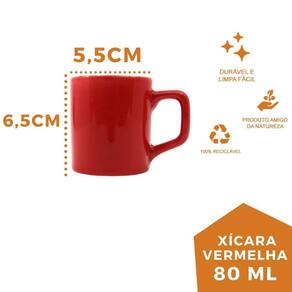 kit 4 Xícaras Café Colors Vermelha 80mL Cerâmica Mesa Posta