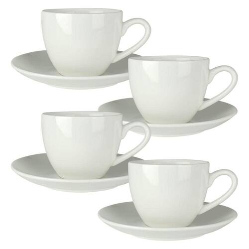 Especificações Técnicas: - Material: Porcelana - Capacidade da xícara: 100ml - Kit contendo 4 xícaras e 4 pires