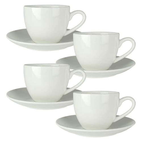 Kit 4 Xícaras de Café com Pires Porcelana Clean 100ml Lyor