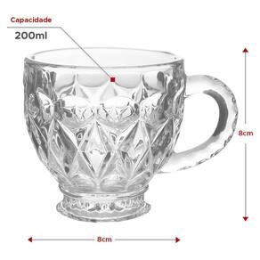 Kit 4 xícaras de cristal de cinza lile 200ml