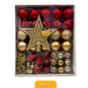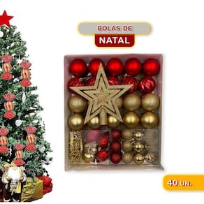 Kit 40 Enfeites de Natal Premium Decoração Completa Arvore Kit de Enfeites de Natal com Bolinhas - Decoração Festiva e Sofisticada Se você ama enfeitar a árvore e toda a casa durante o Natal, este kit com bolinhas será a escolha perfeita Com um design clássico, o kit contém 40 unidades de diferentes itens, com formas, texturas, tamanhos e tonalidades variadas. São corações, pinhas, bolas com glitter e muito mais, permitindo diversas combinações para enfeitar sua casa de maneira festiva e sofisticada. -versatilidade de Decoração: As bolinhas podem ser usadas em diversas decorações natalinas, como guirlandas, arranjos, centros de mesa e, é claro, na árvore de Natal. Cada uma delas contém uma cordinha em seu topo para que você possa amarrá-las e pendurá-las facilmente, tornando a decoração ainda mais prática. -durabilidade e Reutilização: Feitas com materiais de alta qualidade, as bolinhas são resistentes e duráveis, podendo ser reutilizadas em várias celebrações natalinas. Seu tamanho compacto as torna ideais para árvores de Natal de todos os tamanhos. Conteúdo do Kit: -01 Cordão de Pérolas Dourado-01 Estrela Dourada-05 Bolas de 6cm com Glitter-05 Bolas de 6cm Globo Cristalizado-05 Bolas de 6cm Fosca Vermelha-05 Bolas de 6cm Fosca Dourada-03 Bolas de 4cm com Glitter Vermelha-03 Bolas de 4cm com Glitter Dourada-03 Bolas de 4cm Metalizada-03 Bolas de 4cm Espiral-02 Corações Dourados-02 Pinhas Vermelhas Especificações: -material: Polipropileno-dimensões:-estrela: Largura: 20cm x Altura: 20cm-bolas Maiores: Diâmetro: 6cm x Volta completa: 19,5cm-bolas Menores: Diâmetro: 4cm x Volta Completa: 12,5cm-pinhas: Altura: 6,2cm x Largura: 4,5cm-coração: Largura: 4,5cm x Altura: 5,5cm-cordão de Pérola: 4,04 metros-peso: Aproximadamente 400g O kit de enfeites de Natal com bolinhas é uma opção elegante para a decoração festiva de sua casa. Composto por 40 unidades de diversos itens, as bolinhas são feitas com materiais duráveis e reutilizáveis. A variedade de formas, texturas e cores permite diversas combinações, tornando a decoração mais versátil e sofisticada. Complemente o clima natalino com este kit encantador e torne seu lar ainda mais especial nesta época tão especial do ano.
