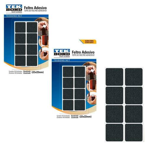 DescriçãoProteja o seu piso, o pé do seu móvel ou nivele a sua mesa. Versatilidade de uso, são aplicados sob os pés de cadeiras, mesas, camas, estofados e móveis em geral, base de artesanatos, objetos de decoração, luminárias, vasos e cachepôs, estojos, etc. Atrás de quadros, relógios, sofás, móveis, entre outros, protegem pisos, paredes e outras superfícies contra riscos e marcas, atenuam impactos, ruídos e vibrações. Composição: material à base de viscose e poliéster. Kit contém 5 cartelas com 40 peças de 2,2 cm x 2,2 cm Quadrado: 22x22 mmContém: 40 unidades DetalhesO feltro protetor adesivo super cola tekbond absorve o impacto de batidas ou quedas e previne problemas com riscos, protegendo objetos, pisos e diferentes superfícies com eficiência, de forma prática e rápida.1. Ideal para usar em móveis para proteger pisos delicados;2. Evitar deslizamentos, riscos e batidas causadas pela movimentação de móveis;3. Possui excelente aderência em diversas superfícies. EspecificaçõesMaterial à base de viscose e poliéster.Aparência: feltroEspessura: 5 milímetrosTeor de sólidos %: 100 %Temperatura de trabalho: - 20 a + 80cResistência ao cisalhamento, n/mm: 2,5 n/mm2Capacidade de peso: 25 mpa Características1. Limpe bem a superfície onde deseja aplicar o feltro protetor adesivo, certificando-se de que o local esteja livre de poeira ou qualquer tipo de oleosidade.2. Retire o filme protetor da peça do feltro.3. Tome cuidado para não encostar seus dedos na área com adesivo.4. Aplique o feltro no local desejado, pressionando o feltro para uma boa fixação. as imagens são meramente ilustrativas