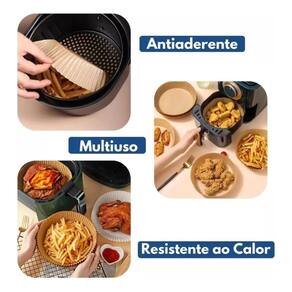 Kit com 40 formas de papel antiaderente para air fryer. Medida: 16cm L x 4,5cm A. Temperatura máxima: 220ºC.Tipo