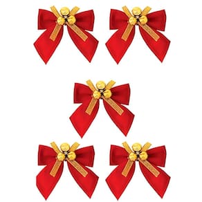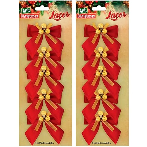 8 Kit Com 5 Laços Decorativo Vermelho E Dourado 9cm;