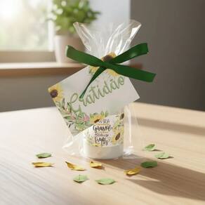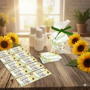 40 Etiquetas Personalizadas: Cada frasco acompanha uma etiqueta temática de Girassol, trazendo charme e personalização às lembranças.