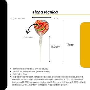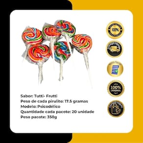 Perfeito para quem quer reviver o sabor da infância, esses pirulitos de tamanho grande e cores psicodélicas trazem o irresistível sabor tutti frutti que encanta crianças e adultos. Com sua presença vibrante, são ideais para decorar mesas, compor lembrancinhas de aniversário, sacolinhas de doces e até animar festas juninas, tornando qualquer ambiente mais alegre e acolhedor.