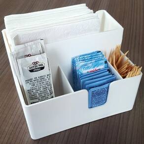 Os portas sachês e guardanapos proporcionam mais praticidade às suas refeições, além de deixar suas mesas ou bancadas organizadas. Com estes suportes você facilita seu dia a dia da melhor maneira, pois eles possuem dois espaços para você organizar os sachês, um espaço para organizar palitos ou colherinhas e um espaço para acomodar os guardanapos, proporcionando melhor acomodação de seus itens. Os molhos são parte fundamental na hora da degustação do alimento e os guardanapos são indispensáveis, por isso este organizador também é ideal para mesas de restaurantes, bistros, bares, cafés, lanchonetes e uma ótima escolha para quem tem seu próprio negócio. Os organizadores possuem design casual e compacto, por isso, se adapta facilmente à decoração já existente no ambiente.