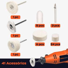 Kit 41 Acessórios Polimento Feltro Algodão Para Micro Retífica Kit com 41 Acesssórios Discos e Pontas de Feltro Algodão para Polimento com Micro Retíficas Dremax - Marca: Dremax - 5 Pontas de Feltro 20mm x 10mm - 6 Discos de Feltro 25,4mm x 6mm - 24 Discos de Feltro 12,7mm x 6mm - 3 Hastes para disco de feltro 3mm - 1 Escova de Lã de Algodão 25mm com Haste - 1 Roda de Pano Costurada 25mm com Haste - 1 Roda de Algodão 25mm com Haste - Indicado para polimentos - Uso em micro retíficas de qualquer marca com pinça de 3mm - Para polir metais e plásticos em superfícies planas ou orifícios - Indicada para polimento de metais ferrosos ou não ferrosos, aço, aço inoxidável, alumínio, bronze, cobre, latão e plástico em geral - Para uso em conjunto com a haste para pontas de feltro - : 90 dias contra defeitos de fabricação A DREMAX é a primeira e única marca brasileira dedicada exclusivamente às micro retíficas, acessórios e acoplamentos para esta indispensável ferramenta. Seja para trabalhos de precisão, artesanato, modelagem ou reparos, a DREMAX tem o produto certo para você. Marca: Não Informado Ean: 7734625993579