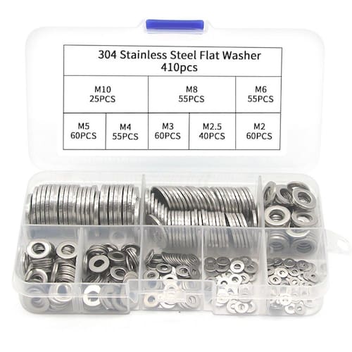 Benefícios: -resistência superior: não oxida, garantindo longa vida útil mesmo em condições adversas -praticidade: caixa com divisórias para fácil identificação e acesso rápido às arruelas -aplicação universal: compatível com parafusos e porcas de diferentes dimensões -variedade de tamanhos: atende às necessidades de reparos e instalações diversas
