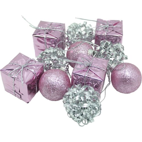 4 Kit Com 11 Pingentes Rosa E Prata De 4cm Para Árvore De Natal;