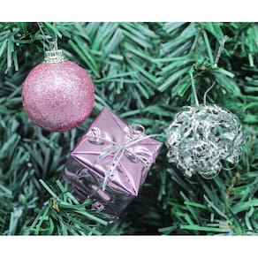 Kit 44 Peças Tubo Natalino Árvore De Natal Prata E Rosa 4cm -