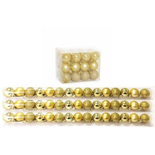 Kit 45 Mini Bolas De Natal Decoradas Mista Dourada 3cm