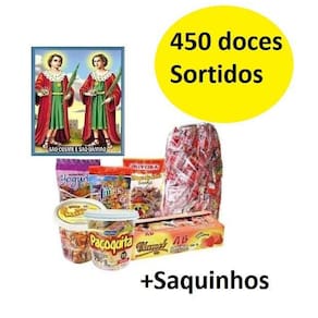 Kit ideal para o dia de Cosme e Damião São 8 tipos diferentes de doces. Acompanha saco e fecho para embalar.