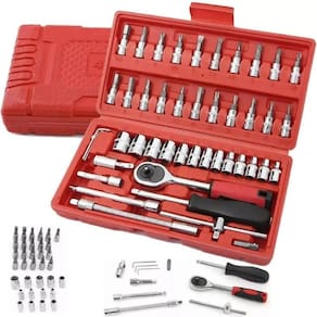 46 Peças Abrangentes: Este kit reúne uma variedade de 46 peças essenciais, prontas para atender suas diversas necessidades de manutenção.