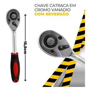 Instruções de Uso: Selecione o soquete ou bit necessário e encaixe na chave de catraca ou extensão desejada. Utilize a catraca reversível para ajustar ou remover parafusos com praticidade. Armazene as ferramentas na maleta após o uso para garantir maior organização e durabilidade.
