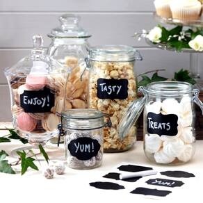 O Adesivo para Potes da linha Gourmet da Prana vem em diversos formatos divertidos para marcar seus potes.