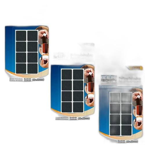Proteja o seu piso, o pé do seu móvel ou nivele a sua mesa. Versatilidade de uso, são aplicados sob os pés de cadeiras, mesas, camas, estofados e móveis em geral, base de artesanatos, objetos de decoração, luminárias, vasos e cachepôs, estojos, etc. Atrás de quadros, relógios, sofás, móveis, entre outros, protegem pisos, paredes e outras superfícies contra riscos e marcas, atenuam impactos, ruídos e vibrações. Composição: material à base de viscose e poliéster.