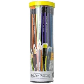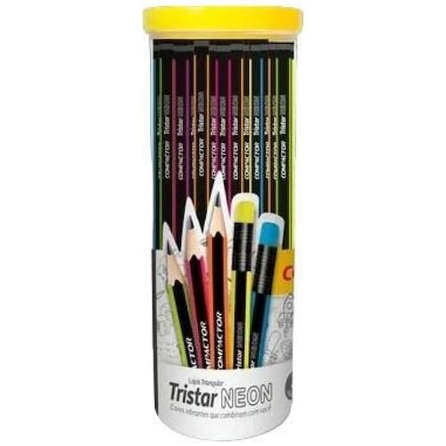 Contém: 48 unidades Lápis Tristar Neon HB Nº2 Triangular com Borracha Eles são ideais para o seu dia a dia. Sua ponta HB nº2 macia, proporciona um traço mais suave e durável. A borracha é colorida, nas cores verde, amarelo, rosa, laranja e azul neon. O seu Corpo é Triangular, que proporciona uma maior facilidade na escrita. Super importante para crianças, principalmente na fase de alfabetização, já que suas mãos são menores, assim evita cansaço desnecessário e mais firmeza em segurar o lápis corretamente, com mais segurança. Ponta resistente; Possui borracha acoplada; Composição: Grafite, madeira, cera, argila, resinas, polímero TPR e partes metálicas. Indicada para crianças maiores de 4 anos. . Ean: 7793138379560
