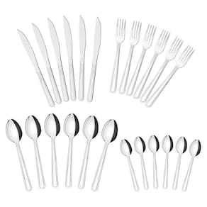 Conteúdo do jogo: 12 - colheres de mesa; 12 - colheres para chá; 12 - facas para churrasco 4; 12 - garfos de mesa.