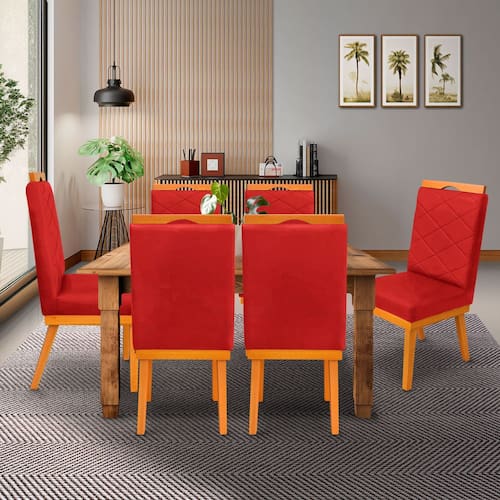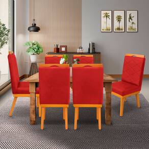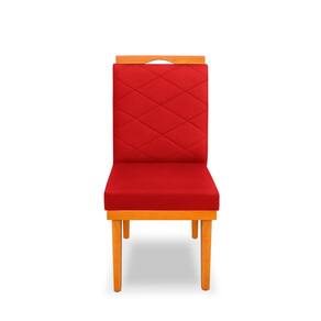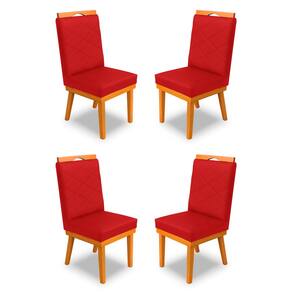 kit 4Cadeira Ana Matelassê tecido suede com Base Fixa de Madeira Maciça e Puxador Castanho - Vermelho