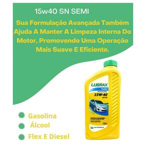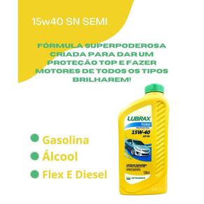 Kit 4 unidades O Óleo Lubrificante 15W40 Lubrax Tecno Semissintético em embalagem de 1 litro é uma solução avançada projetada para oferecer desempenho superior e proteção confiável para uma variedade de motores a gasolina, álcool, flex e diesel. Com sua classificação de viscosidade SAE 15W40, este óleo é formulado para operar eficazmente em uma ampla faixa de temperaturas e condições de funcionamento. Este produto semi-sintético combina óleos básicos refinados com aditivos de última geração, garantindo uma lubrificação excepcional que reduz o desgaste, minimiza o atrito e previne a formação de depósitos prejudiciais no motor. Sua formulação avançada também proporciona excelente estabilidade térmica e resistência à oxidação, mantendo o motor limpo e protegido em todas as situações. Além disso, o Óleo Lubrax Tecno Semissintético é projetado para oferecer uma resposta rápida durante a partida a frio, garantindo uma proteção imediata ao motor, mesmo em condições adversas. Sua embalagem de 1 litro é conveniente e prática, facilitando o manuseio e o armazenamento. Este produto é indicado para uma ampla variedade de veículos, desde carros de passeio até veículos comerciais leves, e é uma escolha confiável para garantir a durabilidade e o desempenho ideal do motor em todas as condições de operação Marca: Não Informado