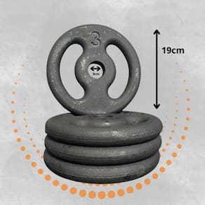 Kit 4x Anilhas de Ferro 03Kg Kit 4x Anilhas de Ferro 03Kg - Anilhas&Cia O Kit Anilhas de Ferro 03Kg é feita em ferro fundido de alta resistência, com pintura eletrostática que protege contra oxidação e desgaste. Possui furação padrão de 30mm, compatível com barras de musculação, e design compacto para fácil manuseio. Ideal para treinos de força, musculação e condicionamento físico, podendo ser Utilizado em exercícios como supino, agachamento, rosca direta e tríceps testa. Ficha técnica resumida: Peso: 12kg Material: ferro fundido Acabamento: pintura eletrostática preta Furação: 30mm Dimensões: 3 x 19 19 cm Conteudo da Embalagem: 04 Unidades de Anilha Ferro 03kg : 3 meses Marca: Não Informado