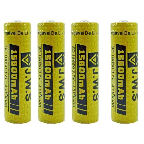 Kit 4X Bateria Mega Forte 18650 4,2V 15800mAh JWS até 11h Tecnologia Avançada