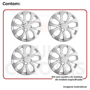 Kit 4x Calota Gm Onix Prisma Aro 14 com Emblema 374cb Calota em Plástico de Alta resistência, Fabricado pela Grid Calotas com os mesmos padrões e exigências da montadora. Com logotipo incluso. SERVE: GM Onix - 2017/20 exceto joy GM Prisma - 2017/20 exceto joy CARACTERÍSTICAS: - Fabricado em Plástico Resistente - Com dupla camada de verniz - Resistente a água e calor - Feito de acordo com os padrões da montadora - Fixação: por Parafusos - Furação: 4x100 - Cubo: Baixo - Cor: Prata - Referência: 374CB - Marca: Grid Calotas ITENS INCLUSOS: - Um 1 Kit com Quatro 4 Calotas com Emblema Incluso. DIMENSÕES Unitário - Diâmetro: 39 cm - Altura: 4 cm INSTALAÇÃO A instalação é feita de forma simples, podendo ser feita por você mesmo. Não necessita retirar todos os parafusos. de 30 dias para defeitos de fabricação. SOBRE O ENVIO Marca: Não Informado