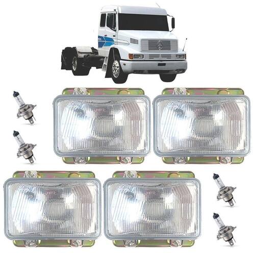 Kit com 4 faróis para caminhões mercedes bicudo + 4 lâmpadas h4 12 volts