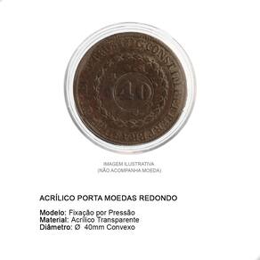O Kit Acrílico Porta Moedas 3BZN 40mm é um acessório essencial para colecionadores que buscam preservar e exibir suas moedas de forma segura e elegante. Fabricado em acrílico transparente de alta qualidade, este produto oferece uma proteção duradoura contra poeira, quedas e outras influências ambientais que poderiam danificar suas moedas.Seu design inclui uma fenda lateral que permite a abertura e fechamento com segurança, garantindo que a moeda fique firmemente alojada dentro da cápsula. Além de ser resistente, o acrílico utilizado não contém PVC, o que evita possíveis reações químicas que poderiam afetar a integridade das moedas ao longo do tempo.Este porta moedas é ideal para exibir sua coleção, especialmente quando combinado com suportes de madeira ou caixas de MDF, vendidos separadamente. Sua transparência cristalina permite uma visualização clara dos detalhes das moedas, tornando-o uma escolha perfeita tanto para armazenamento quanto para exibição em vitrines ou prateleiras.Com excelente acabamento e durabilidade, O Kit Acrílico Porta Moedas 3BZN é uma peça indispensável para quem leva a numismática a sério, oferecendo tanto proteção quanto sofisticação para a sua coleção?.CARACTERÍSTICASModelo: Fixação por Pressão Material: Acrílico TransparenteDiâmetro: 40mm