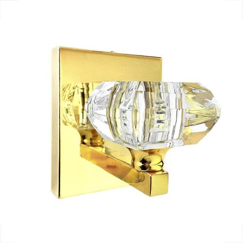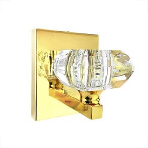 Descrição: - Materiais: metal e cristal k9. - Dimensões do cristal CxLxA : 7 cm x 7 cm x 4 cm - Dimensões da base: Altura: 12 cm Largura: 10 cm Profundidade: 2 cm - Profundidade total da arandela: 10 cm