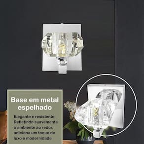 Os cristais k9 são conhecidos por sua durabilidade e qualidade excepcionais, garantindo que a arandela mantenha seu brilho e beleza ao longo do tempo. Extremamente versátil, combinando em uma variedade de estilos de decoração, desde os mais clássicos até os mais contemporâneos.