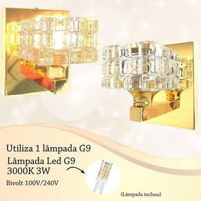 Arandela interna metal e cristal g9 lavabo banheiro quarto