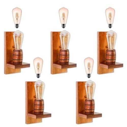 Kit com 5 Arandelas Coloniais Modelo Barril com Lâmpada Inclusa