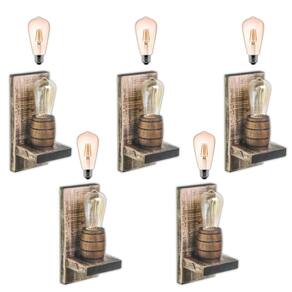 Kit com 5 Arandelas Coloniais Modelo Barril com Lâmpada Inclusa