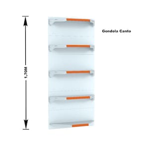 Kit 5 bandejas para gôndola canto 170 amapá premium flex 40/60 cor branco porta etiqueta laranja