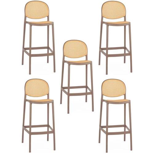 Largura: 100 | Tamanho: Alta | Produto: Kit Banquetas | Tonalidade: Marrom Claro | Comprimento: 100 | Altura: 107 | Peso do Produto: 8 | Cor: Marrom Claro | Material da Estrutura: Polipropileno | Quantidade de Lugares: 5 | do modelo: 1 | Exige montagem: Sim | Baterias são necessárias?: Não | Certificação de teste externa: Não | Is Fragile: Não | de caixas: 2 | Fabricante: Magazine Decor | da peça: 1 | Peso do item: 8 | Principais Características do Produto (bullet_point#0): Experimente o equilíbrio perfeito entre estilo e comodidade com a nossa Banqueta Alta com Encosto Roma. | Principais Características do Produto (bullet_point#1): O encosto fornece apoio para as costas, permitindo que você relaxe com conforto e desfrute de longas conversas, refeições ou momentos de descontração. | Principais Características do Produto (bullet_point#2): Feita em polipropileno resistente, esta banqueta é construída para suportar o uso diário. | Componentes incluídos: 5 Banquetas | Quantidade de itens: 5 | Dimensões do item P x L x A: 107x100x100 | Ambiente Indicado: Cozinhas | Coleção Jardim: Não | Altura da Banqueta: 107 | Tipo do Material da Estrutura: Polipropileno | Formato: Banqueta