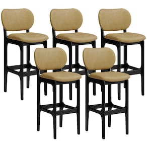 Kit 5 Banquetas Alta Bar Cozinha Sala Jantar Fixa Betta L02 Preto Couríssimo Casco F - Lyam Decor - Fendi