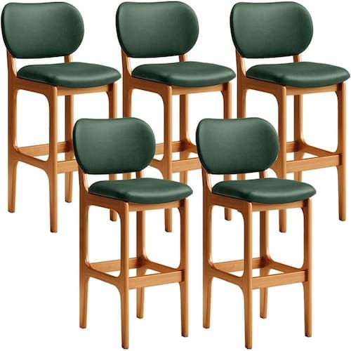 Amplamente sofisticado, o Kit 5 Banquetas Alta Bar Cozinha Sala Jantar Fixa Betta L02 Imbuia Facto Verde Musgo - Lyam Decor irá agregar ainda mais valor em sua decoração!! Sendo capaz de compor muito bem o ambiente, é produzido com materiais de excelente qualidade, a resistente estrutura em madeira de Taeda, na cor imbuia, conta com apoio para os pés (que garante maior segurança), além do assento e encosto estofados super confortáveis e convidativos, que são revestidos em tecido Facto, extremamente elegante.