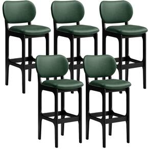 Amplamente sofisticado, o Kit 5 Banquetas Alta Bar Cozinha Sala Jantar Fixa Betta L02 Preto Facto Verde Musgo - Lyam Decor irá agregar ainda mais valor em sua decoração!! Sendo capaz de compor muito bem o ambiente, é produzido com materiais de excelente qualidade, a resistente estrutura em madeira de Taeda, na cor preto, conta com apoio para os pés (que garante maior segurança), além do assento e encosto estofados super confortáveis e convidativos, que são revestidos em tecido Facto, extremamente elegante.
