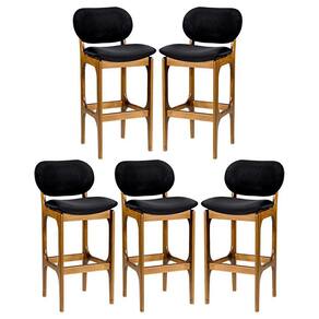 A Banqueta Alta Decor é o modelo ideal para completar o seu ambiente. Dispõe de um design atual com assento e encosto estofado dando um charme único ao móvel e um conforto maravilhoso. As banquetas são móveis versáteis que podem ser utilizados em diversos ambientes e funcionalidades, permitindo composições na decoração e agregando conforto e aconchego no espaço. Podem ser utilizadas em bancadas de salas conjugadas, mesas bistrô em sacadas gourmet ou onde você precisar. O assento estofado é preenchido com espuma D23 e o encosto com espuma D18, são revestidos com tecido suede na cor preto. A estrutura é desenvolvida em madeira maciça com acabamento em verniz na cor imbuia, garantindo sofisticação e durabilidade. CARACTERÍSTICAS TÉCNICAS: - Estrutura Produzida em Madeira Maciça - Encosto Anatômico em MDF Laminado - Acabamento em Verniz na cor Imbuia - Assento Preenchido com Espuma D23 - Encosto Preenchido com Espuma D18 - Revestido em Tecido Suede Preto L14 - Produto Entregue Montado INFORMAÇÕES TÉCNICAS: Altura: 104 cm Altura até Assento: 75 cm Largura do assento e encosto: 50 cm Profundidade:54 cm Peso:11 kg *Kit Composto por 5 Banquetas INFORMAÇÕES ADICIONAIS: Garantia para defeitos de fabricação conforme Código de Defesa do Consumidor. *ATENÇÃO: Entregas são feitas em horário comercial. Não nos responsabilizamos pela montagem, subir ou içar o móvel. **As imagens ambientadas são meramente ilustrativas e podem apresentar itens que não compõe o produto, as cores do produto podem variar de acordo com o monitor, a iluminação do ambiente ou sua percepção visual. ***Limpeza: Deve ser feita com pano macio e seco ou levemente umedecido com água e sabão neutro. Não devem ser utilizados abrasivos.