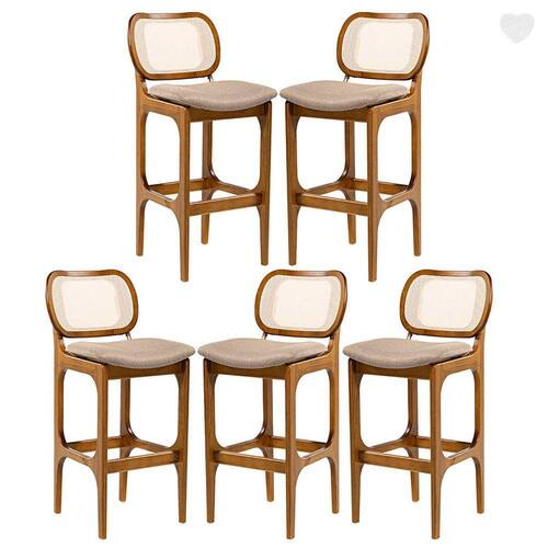 A Banqueta Alta Decor é o modelo ideal para complementar o seu ambiente. Dispõe de um design atual com assento estofado e encosto em rattan. As banquetas são móveis versáteis que podem ser utilizados em diversos ambientes e funcionalidades, permitindo composições na decoração e agregando conforto e sofisticação ao ambiente. Podem ser utilizadas em bancadas de salas conjugadas, mesas bistrô em sacadas gourmet ou aonde você precisar. Produzida com madeira maciça, garantindo a sua durabilidade e vida útil. CARACTERÍSTICA TÉCNICAS: - Produzido em Madeira Maciça Sustentável - Acabamento em Verniz na cor Imbuia - Assento Estofado Preenchido com Espuma D23 - Encosto com Revestimento em Rattan em Fibra de Algodão Sextavada na cor Bege - Tecido de Alta Qualidade em Linho na cor Marrom Claro L87 - Banqueta Entregue Montado * Kit Composto por CINCO Banquetas INFORMAÇÕES TÉCNICAS: - Altura Total: 104 cm - Altura até o Assento: 75 cm - Largura Total: 50 cm - Profundidade Total: 54 cm Informações Adicionais: Garantia para defeitos de fabricação conforme Código de Defesa do Consumidor. *ATENÇÃO: Não nos responsabilizamos pela montagem, subir ou içar o móvel. *As imagens ambientadas são meramente ilustrativas e podem apresentar itens que não compõe o produto, as cores do produto podem variar de acordo com o monitor, a iluminação do ambiente ou sua percepção visual. *Limpeza: Deve ser feita com pano macio e seco ou levemente umedecido com água e sabão neutro. Não devem ser utilizados abrasivos.