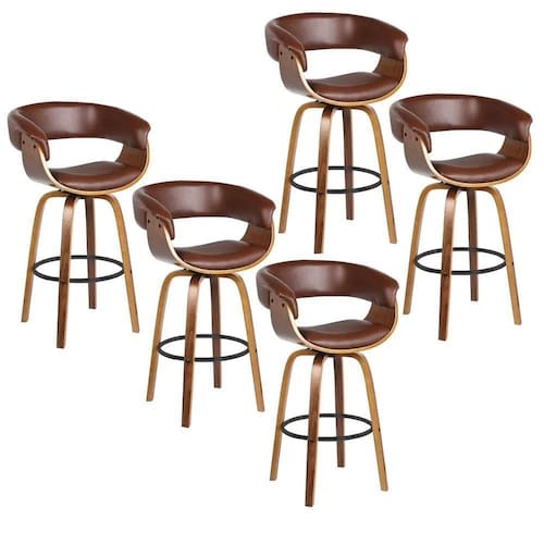 A definição de versatilidade foi atualizada com o Kit 5 Banquetas Altas Alta com Encosto Base Madeira Ravi R02 Sintético Marrom, da Mpozenato! Seja para sua cozinha, bancada ou área gourmet essa banqueta alta com encosto elegante veio para revolucionar sua experiência de sentar-se.