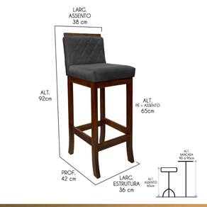 Apresentamos a banqueta Nice, feita com madeira maciça de reflorestamento e acabamento em verniz. Seu assento preenchido com espuma D26 e encosto com espuma D23 garantem conforto duradouro. O encanto adicional vem da costura matelassê no encosto, enquanto o revestimento em suede adiciona uma sensação de luxo. Adapta-se perfeitamente a qualquer espaço, adicionando elegância e conforto instantaneamente. CARACTERÍTICAS TÉCNICAS: - Produzido em Madeira Maciça de Reflorestamento; - Acabamento em Verniz na cor Castanho; - Assento Preenchido com Espuma D26; - Encosto Preenchido com Espuma D23; - Encosto com Costura Matelassê; - Revestimento em Suede na cor Cinza. *Indicada para Bancadas/Mesas com Alt. 90/95 cm. *PRODUTO ENVIADO MONTADO. INFORMAÇÕES TÉCNICAS: Altura Total: 92 cm Altura até Assento: 65 cm Altura até Travessa: 13 cm Altura Encosto: 35 cm Largura Assento: 38 cm Largura Estrutura: 36 cm Profundidade Total: 42 cm Profundidade Assento: 41 cm Peso: 7 kg *Kit Composto por 5 Banquetas Nice. INFORMAÇÕES ADICIONAIS:ATENÇÃO: Móvel produzido em madeira maciça natural podendo ocorrer mudança no tom da madeira conforme o produto;*Conferir se o produto está de acordo com o que comprou, produto danificado não será aceito troca;**As imagens ambientadas são meramente ilustrativas e podem apresentar itens que não compõe o produto. As cores do produto podem variar de acordo com o monitor, a iluminação do ambiente ou sua percepção visual;***Limpeza deve ser feita com pano macio e seco ou levemente umedecido com água e sabão neutro. Não devem ser utilizados abrasivos como palha de aço e objetos cortantes;Garantia para defeitos de fabricação conforme Código de Defesa do Consumidor. Marca: CCS Interiores